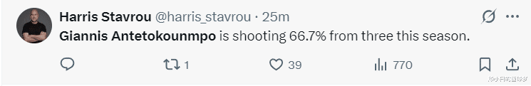 On October 27, the Milwaukee Bucks lost to the Cleveland Cavaliers 113-118 in an away game and missed their third consecutive victory. In this game, the Bucks were suppressed by the Cavaliers in the second quarter, and struggled to narrow the point difference to 2 points in the third quarter. However, they were pulled back to 7 points by the Cavaliers in the final quarter. The game came to an end after the Bucks committed a tactical foul. In the end, the Bucks swallowed the defeat, and Giannis scored 40+14+9. This Bucks team has a weak lineup. After Lillard was waived by the extension clause, Giannis will lead the team as a single-core player. Both ends of the offense and defense need to be supported by Giannis alone. In addition to taking most of the team's scoring, Antetokounmpo also needs to grasp the defense inside and outside. He first blocks Allen inside and then rushes to the outside to delay Mitchell. Antetokounmpo is very tired. In the first half, Antetokounmpo scored 14 points, 5 assists, 4 rebounds and 1 block on 6-of-8 shooting. In the third quarter, Antetokounmpo also hit a three-pointer. In a single quarter, Antetokounmpo scored 15 points, 4 rebounds, 1 assist, and 1 steal to help the Bucks chase points. After three quarters, Giannis had a near-triple double with 29 points, 8 rebounds, and 6 assists. In the last quarter, Giannis took a break first and the Cavaliers quickly opened up and scored 7 points. After Antetokounmpo came on the stage, he scored 6 points, 3 assists, 1 steal and 1 block. The two teams entered the decisive moment. The Cavaliers had already scored in double figures with five players and too many offensive points. Giannis made two free throws. Mitchell responded with a mid-range shot. Antetokounmpo made another foul and made one of two free throws. Antetokounmpo's dunk was reduced to 3 points. The Bucks began to commit tactical fouls and the game came to an end. In 33 minutes of the game, Giannis made 14 of 20 shots, 1 of 1 from three-point range, and 11 of 16 free throws. He scored 40 points, 14 rebounds, 9 assists, 2 steals, and 2 blocks. His shooting percentage was 70%, and his three-point shooting percentage was 100%. Antetokounmpo still lost with such explosive statistics. It can only be said that the depth of the lineup is insufficient. Bucks reporter Nathan Marzion: We are so lucky to have a star like Giannis Antetokounmpo in the team. Bucks reporter BV: Giannis is already the best player in Bucks history; NBA reporter Harrison: Giannis’ three-point shooting percentage this season is as high as 66.7%.