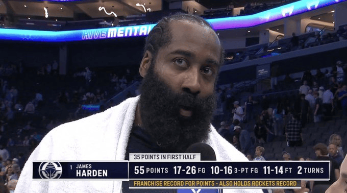 Second only to Kojancu! Harden became the fourth oldest player in history to score 55 points.