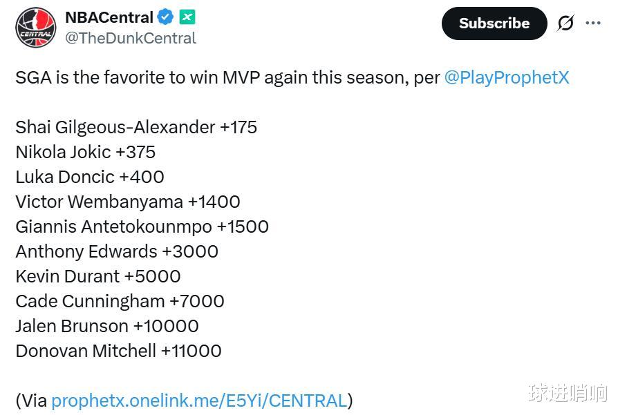 However, US media and famous speakers are very optimistic about Durant. In the latest MVP forecast list, Durant ranks 7th, second only to Alexanderna, Jokic, Doncic, Vinban Yama, Antetokounmpo and Edwards.