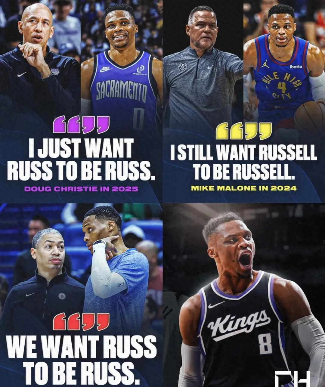 History is always strikingly similar. The head coaches of the Clippers, Nuggets and Kings all said to Westbrook: "I hope he can be himself." Fans even combed through interviews from previous years and found that Westbrook had a high content of "being himself". In view of his passionate but often aggressive personality in recent years, his brave rushing and insufficient shooting style, "being himself" has become a new joke for him. Is it really that bad to let Westbrook "be himself"? So why did the king let him "be himself"? Kings general manager Perry said: "Westbrook has the characteristics that the team is trying to cultivate. He can provide leadership on and off the court." How to understand this statement? The Kings have missed the playoffs for two consecutive years, and their lineup has undergone major changes, so their competitiveness is limited. Signing Westbrook will not bring much improvement in his playing style, but with his fighting spirit, he may be able to inject "chicken blood" into the team and stimulate the players' lower limit. This is the so-called "catfish effect"! The positive impacts of letting Westbrook "be himself" are countless. For example, in the 2016-17 season, Durant switched to the Warriors. Westbrook renewed his single-core contract and carried the team into the playoffs with an explosive triple-double averaging 31.6 points, 10.7 rebounds and 10.4 assists per game. It can be called the strongest positive effect of "being yourself"! In the 2020-21 season, Westbrook averaged 22.2 points, 11.5 rebounds and 11.7 assists per game, becoming the "Historical Triple-Double King" and regaining his seat with the Wizards, who had missed the playoffs for two consecutive years. After Westbrook left the following year, the Wizards have never made the playoffs. In the 2023 playoffs, George and Leonard were injured one after another. Westbrook, who was "being himself", scored high scores of 28, 30, and 37 in three consecutive games. With a basic salary of 780,000, he was forced to compete with the Suns' Big Four with a maximum salary of 110 million. Although the Clippers lost a fight to the death, but in the absence of two stars, the team's blood and backbone are still respected. Last season, Westbrook activated the Nuggets' defense with a broken finger, averaging 13.8 points, 4.8 rebounds, 2.8 assists and 1.3 steals per game, helping the Nuggets beat the Clippers in the tiebreaker. In the semifinals, Westbrook added another fracture to his finger, but he still played seven games with the injury and had surgery at the end of the season. Originally, Westbrook's Nuggets contract was a player option this summer, his salary was fully guaranteed, and he had high hopes of winning the championship, but Westbrook resolutely jumped out of the contract. According to US media and former NBA player Danny Green, the Nuggets in the new season are no longer prepared to include Westbrook in their plans after strengthening through transactions, and will even give priority to some players who are weaker than him. Westbrook still wanted to "be himself" on the court and was unwilling to just act as a mentor in the locker room, so he turned around and left. In his first game with the Kings, Westbrook will still pursue defense and block shots at full speed, fly and grab rebounds, and his 6 rebounds are second on the team. Many times, "being yourself" may not be the optimal solution, but it is really rare to be able to "be yourself" all the time. Friends who have been sharpened by society will definitely understand!
