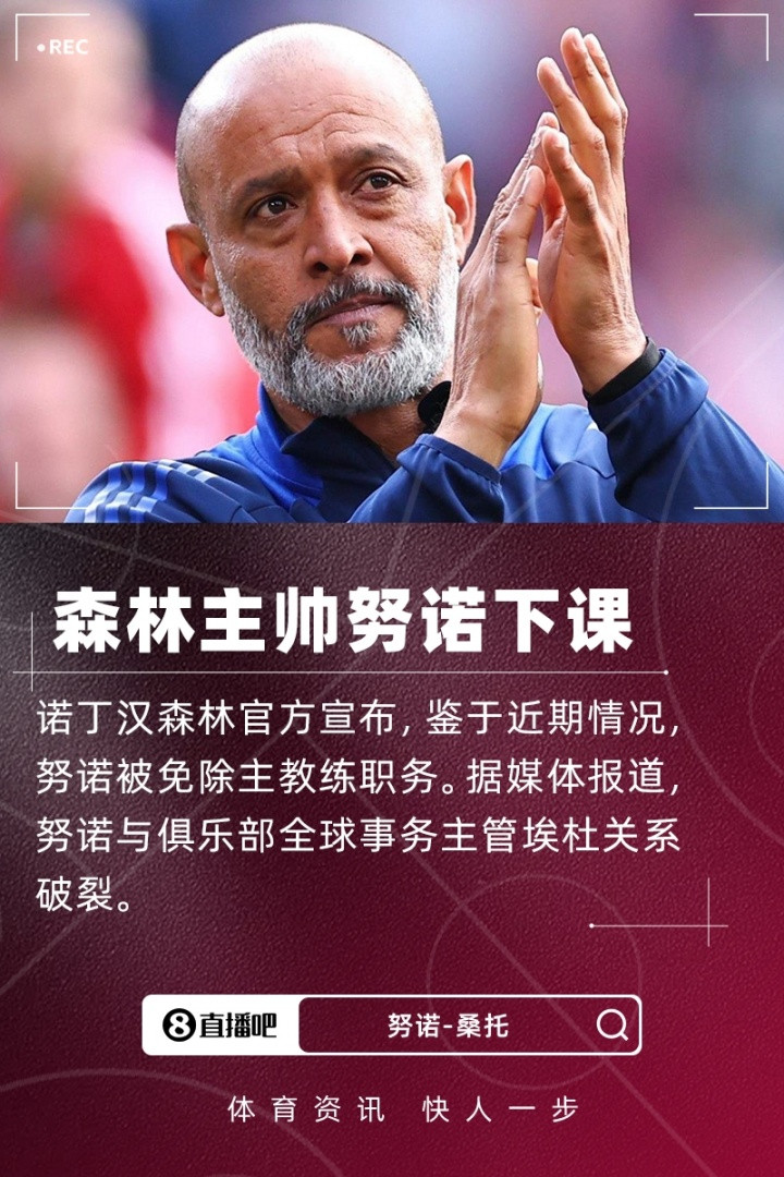 September 9th news, ranks 10th with 4 points in three rounds! Forest Official: Portuguese coach Nuno Santo was dismissed Forest Announcement: Nottingham Forest Football Club confirmed that in view of the recent situation, Nuno Espirito has been removed from the position of head coach today. Club thanks Nuno for his contributions during the glorious period of the city stadium, especially his key role in the 2024/25 season - a period of time that will be remembered forever as a highlight in the club's history. As a core figure in the path to success last season, he will always occupy a special place in our journey. In the new Premier League season, Nottingham Forest started with 1 win, 1 draw and 1 loss, temporarily ranked 10th with 4 points. According to media reports, Nuno's relationship with the club's global affairs director Edu broke down, and he himself said he was "not that close to his boss Marinakis anymore." Forest's new coach candidates include Postkoglu, Mourinho and Rodgers. Exclusive Premier League Watch is in Migu