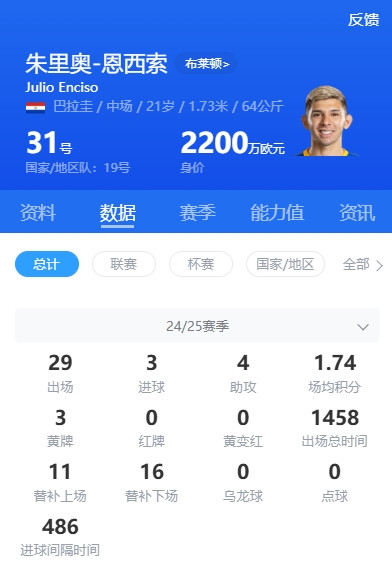 August 30th, famous reporter Romano "Here we go" confirmed that Brighton midfielder Enciso will transfer to Ligue 1 Strasbourg. Romano said that Chelsea's parent company has reached an agreement with Brighton on Encisso's transfer, with a transfer fee of 20 million euros confirmed and will be signed to the contract in June 2030, and the physical examination has been completed 100%. Enciso will transfer to Strasbourg immediately and may transfer to Chelsea in the future. Previously, there was news that Enciso failed the physical examination and the transaction failed, but Romano denied the report today and confirmed that the transaction would be completed normally. Strasbourg and Chelsea belong to the Blue Co Group. Exclusive Premier League Watch is in Migu
