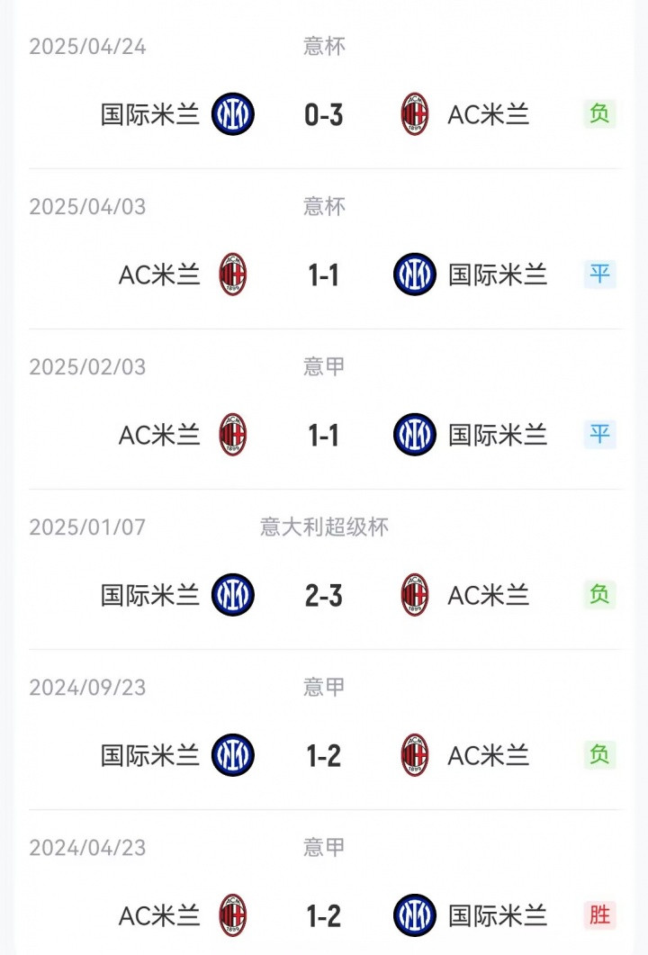 November 24 News At 3:45 in the morning on November 24, in the 12th round of Serie A, Inter Milan vs. Milan, the Milan Derby was staged! Before the game, both sides announced the starting lineup. [Both sides start] Milan starting: 16-Maignan, 31-Pavlovic, 46-Gabbia, 23-Tomori, 33-Bartsaki, 12-Rabi Ott, 14-Modric, 19-Fofana, 56-Salem Marcos, 11-Pulisic, 10-Leo Inter Milan starting: 1-Sommer, 25-Acerbi, 95 - Bastoni, 25-Akanji, 30-Carlos Augusto, 23-Barrera, 20-Calhanoglu, 8-Sucic, 32-Dimarco, 9-Thuram, 10-Lautaro The text version is being updated for the first time... Before this game, Inter Milan had 8 wins and 3 losses, ranking second in Serie A with 24 points; Milan had 6 wins, 4 draws and 1 loss, ranking fifth in Serie A with 22 points. [Confrontation History] [Recent Results]