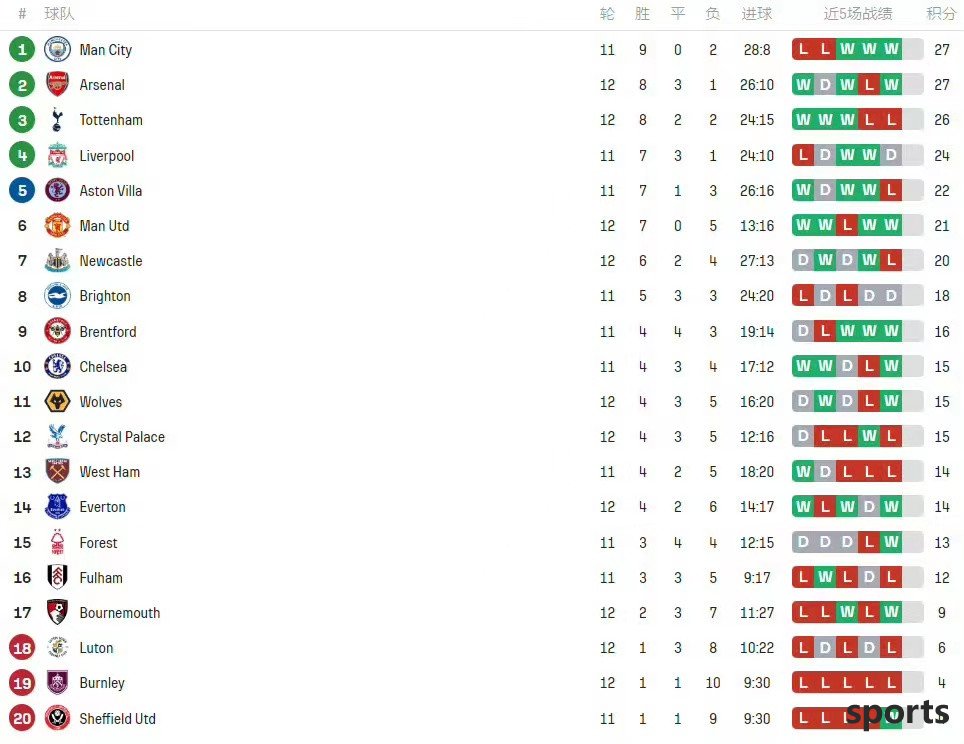Then we came to Tottenham's decline. The former strong man has now suffered from a series of losses and has fallen to third place. This undoubtedly makes fans feel regretful and also makes their dreams of winning the championship face test. Tottenham's ranking position may be changing, but their strength cannot be underestimated. This is just a temporary trough, and they will eventually rise again and become the focus of bright light.