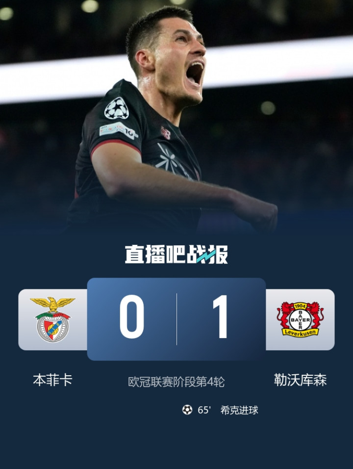 November 6th: In the fourth round of the Champions League, Leverkusen defeated Benfica 1-0 away from home. Schick, who scored the winning goal, was interviewed after the game. Sigg first said: "Today's game was very difficult. We had to fight until the last moment because Benfica was very dangerous and they created many opportunities. Therefore, this victory is very important to us." Sigg continued: "Our defenders did a very good job The work of the goalkeeper was also very good. Today we also had luck and the opponent hit the goalpost, but we kept a clean sheet and won in the end. We have a few games left and nothing is determined yet, so we will try to play one game after another and then think about the Champions League.”