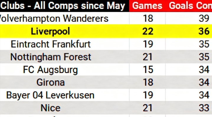 We all know that Liverpool is in terrible shape this season, but the newly disclosed defensive data may be more shocking than imagined-this Premier League giant has become the second-worst defensive team in the five major European leagues. Although fans have long been mentally prepared for the team's struggles this season, the reality may be grimmer than the most pessimistic predictions. The latest statistics show that since May this year, Liverpool coached by Slott has the second-worst defensive record among all teams in the five major European leagues. Collapsed defense data It is worth emphasizing that, as shown in the table below, across all competitions in the past six months, only Wolves, who are stuck in the relegation quagmire, have conceded more goals than Liverpool - which proves that the Red Army's disease did not suddenly break out this season. (Due to the small size of the original statistical chart, the top three are listed here for readers) 1. Wolves: conceded 39 goals 2. Liverpool: conceded 36 goals 3. Frankfurt: conceded 35 goals Why are giants so fragile? With world-class defenders such as Van Dijk and Konate, and two top goalkeepers Alisson and Mamadashvili, this defensive performance is incredible. This undoubtedly points the finger at the tactical system issues of Slott's coaching staff. Liverpool team expert Liam Toch pointed out in an interview: "This data is misleading - 25% of the goals conceded occurred at the end of last season, when the team had already locked up the Premier League championship in advance, and the state showed an understandable decline." But he also warned: "The performance of conceding 27 goals in 18 games this season (averaging 1.5 goals per game) is indeed not worthy of the title of defending champion. 2024/25 season The defensive resilience established in the early stages has disappeared. This is due to multiple factors: low-level mistakes by individual players, the decline in defensive understanding caused by summer window exchanges, the loss of control in the midfield when Hrafenberch/McAllister was absent, and the leadership vacuum caused by Alisson's injury (of course this is not blaming Mamadashvili). " The steel defense line created in the Klopp era is collapsing. Can Slott reverse the crisis? Reds fans, do you think this is a short-lived fluctuation that can be corrected, or is it the beginning of a systemic crisis?
